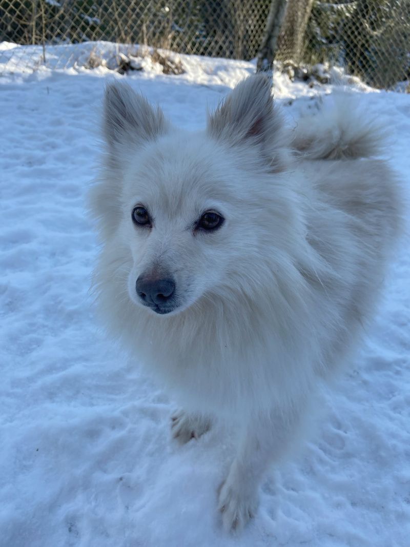 Kirveli, tuttujen kesken Irma, on 4-vuotias leikattu mittelspitz-narttu. Hän on todellakin yhden ihmisen koira, joka liimantuu omaan ihmiseensä kiinni joka tilanteessa. Muihin perheenjäseniin ja eläimiin Kirveli suhtautuu ihmisestä ja eläimestä riippuen välttelevästi, välinpitämättömästi tai epäluuloisesti. Kirveli murisee kaikille, jotka yrittävät tunkea hänen ihmisensä lähelle, tai vain kävelevät ohi, Kirveli ei jaa omaa ihmistään kenenkään kanssa. Tämä topakka neiti saattaa epävarmoissa tilanteissa käyttää myös hampaitaan varoituksena, joten häntä ei luovuteta lapsiperheeseen tai perheeseen jossa vierailee pieniä lapsia. Kirvelin sietokyvyn raja on suunnilleen yläkouluikäisissä, joten esiteini- ja teini-ikäisiä hän sietää paremmin. Vieraita ihmisiä, varsinkin miehiä, saattaa pelätä kovastikin.