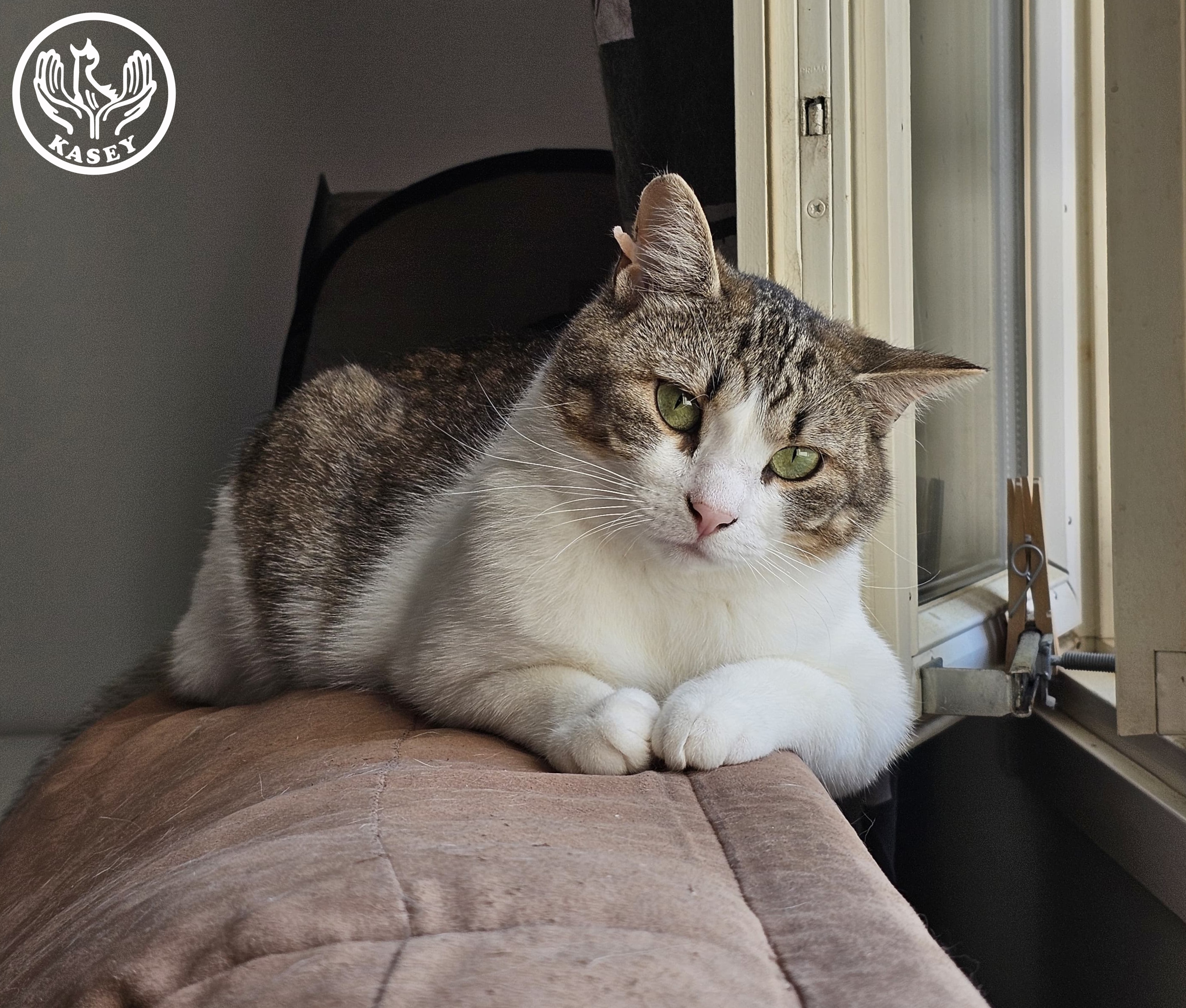 Tulen hyvin toimeen sijaiskodin oman kissan kanssa, joskin olin aluksi melko varautunut. Olen taustastani johtuen tottunut toisten kissojen seuraan. Minua ei luovuteta pienten lasten perheeseen. Olisi kiva saada mukava kissakaveri siellä omassa uudessa kodissani. Olen FIV/FeLV negatiivinen.