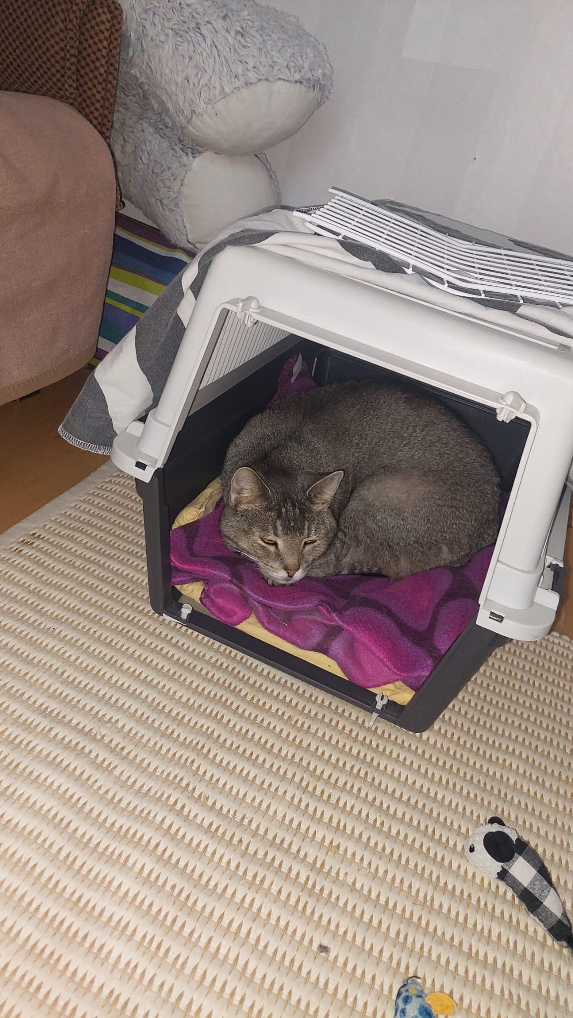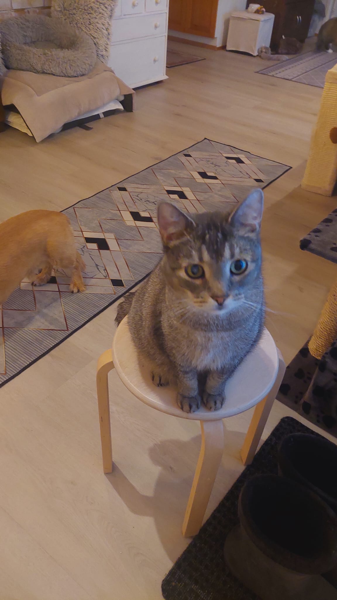 Sitä ennen Risto tykkäsi olla autossa, rakasti eläinlääkäriä ja oli muutenkin mitään pelkäämätön kaveri. Mutta niin useat ikävät käynnit aiheutti Ristolle stressiä. Risto antaa tehdä kaikki toimenpiteet kiltisti, mutta selkeästi nykyään stressaa kopassa oloa.