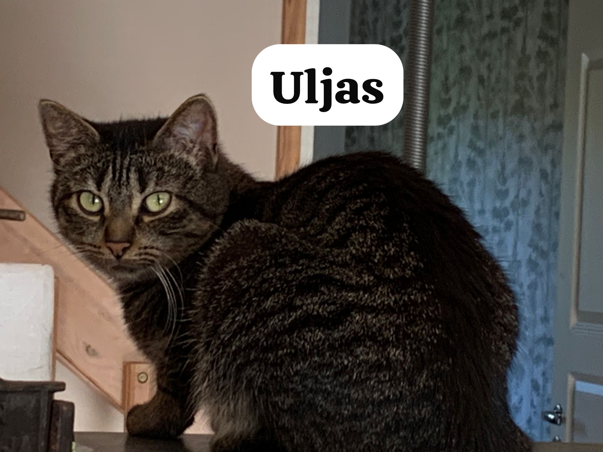 Uljas on arviolta alle 3-vuotias tummanharmaaraidallinen kolli. Uljas on samasta sisäpopulaatiosta kuin Urpukin, ja he ovat todennäköisesti sisaruksia. Se on vieläkin varautunut ihmisiä kohtaan, mutta antaa tutun ihmisen silittää kun ruokaa on tiedossa. Tällöin myös kiehnää jaloissa ja kehrää. Ottaa herkun nätisti kädestä.