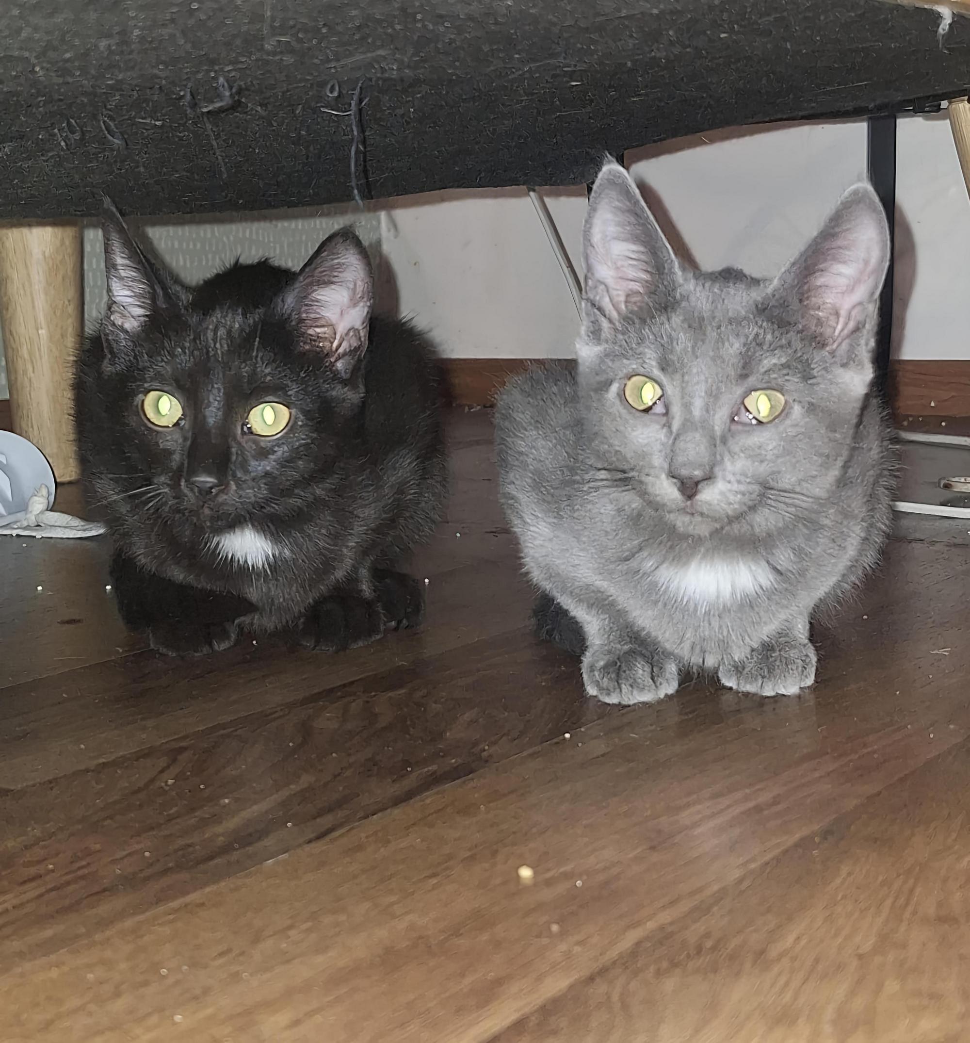 Varsinkin Olivia on kasvanut hitaanpuoleisesti ja jää varmasti melko pienikoiseksi. Hänen mahansa on herkkä ja tämän vuoksi kissat ovat syöneet tähän asti hypoallergiaruokaa. Tällä vatsa on pysynyt hyvänä. Hiekkalaatikon käyttö sujuu molemmilla hyvin, eikä ohipissoja ole tullut kummallekaan.