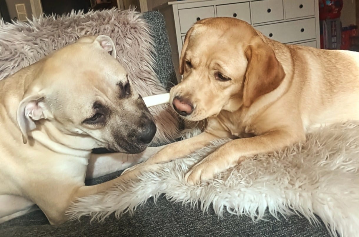 Samassa taloudessa olevan koiran kanssa tulee hienosti toimeen heistä onkin tullut erottomaton pari. Tekevät kaiken yhdessä.