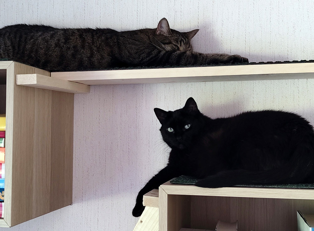 Meitä molempia yhdistää myös se, että stressaannumme helposti muutoksista ja hälinästä, joten tarvitsemme oman turvallisen tilan, jonne mennä tarvittaessa rauhoittumaan. Etsimmekin ensisijaisesti kotia aikuistaloudesta, jossa on vakaat elinolosuhteet. Lapsiperhekoti voi tulla kyseeseen, jos lapset ovat jo isompia ja osaavat tarvittaessa jättää meidät rauhaan, ja aikuiset osaavat ja jaksavat ohjata lapsia elämään kissojen kanssa. Emme tule toimeen muiden kissojen kanssa, emmekä ole tottuneet koiriin ja siksi tarvitsemme kodin, jossa ei ole muita lemmikkejä.