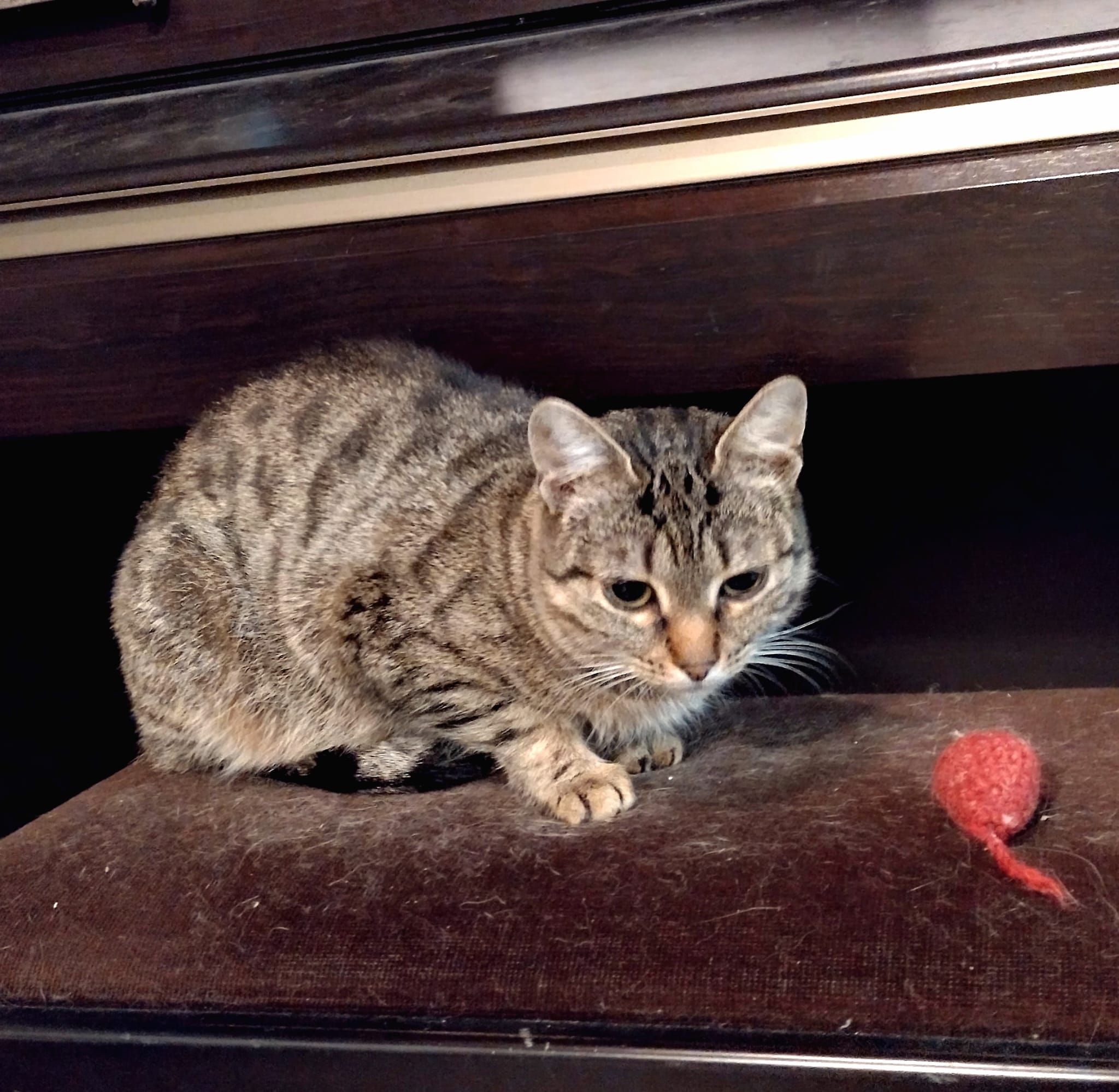 Kun Papu tuli minulle sijaiskotihoitoon, hän oli juuri vieroitettu pennuistaan, käynyt steriloinnissa ja oli hyvin arka sekä pienikokoinen. Aluksi uusi ympäristö stressasi häntä kovasti, eikä hän syönyt lainkaan. Kävimme eläinlääkärissä, jossa Papu sai nesteytystä ja ruokahalua herättävää lääkitystä. Sen jälkeen hän alkoi vähitellen syödä ja toipua. Painoa on kertynyt lisää, ja Papu näyttää nyt jo ihan kissalta.