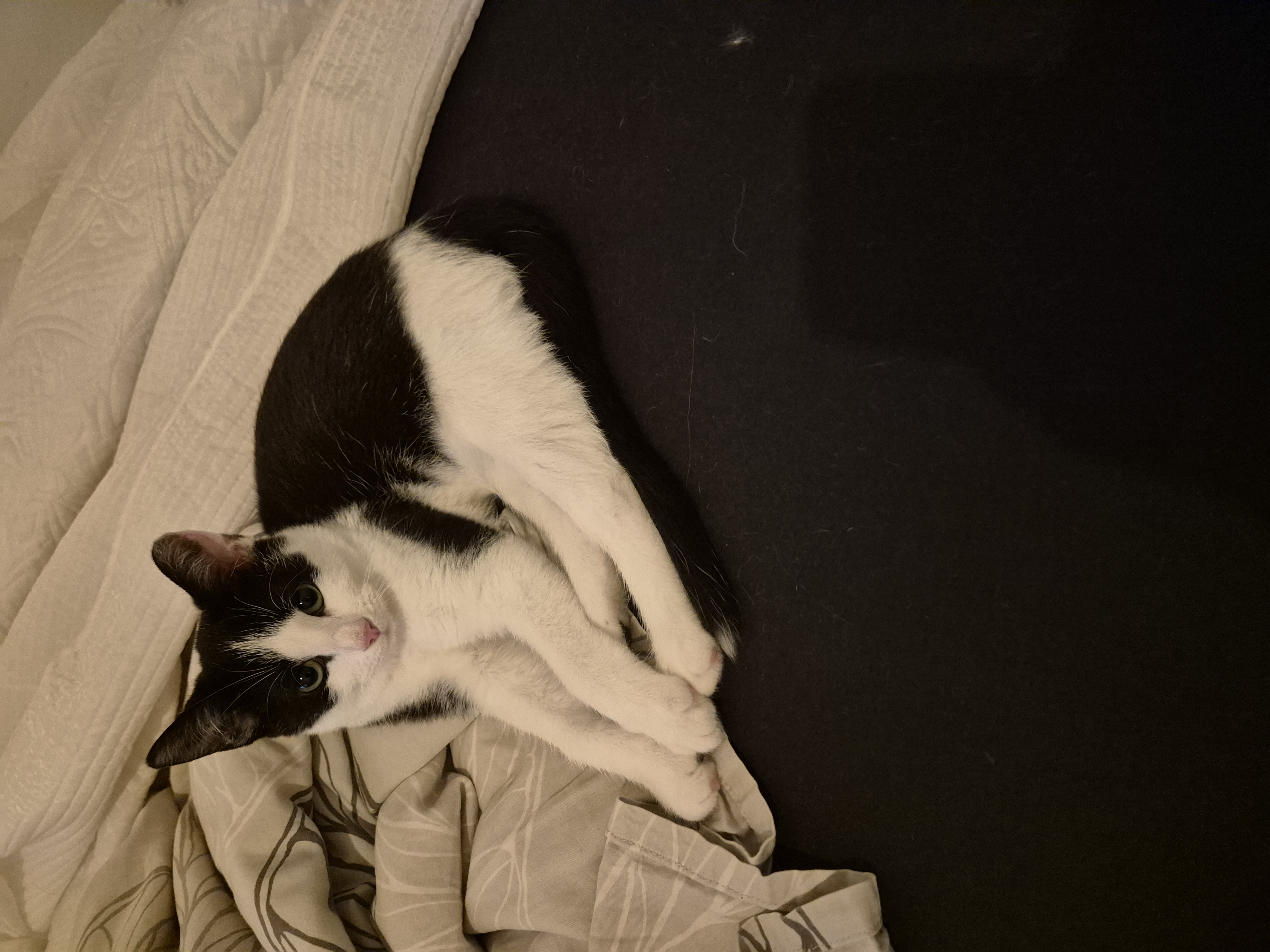 Pehmotassu (mustavalkoinen) ja Sähikäinen (mustavalkoinen, enemmän valkoista) ovat toistensa turvatoverit,