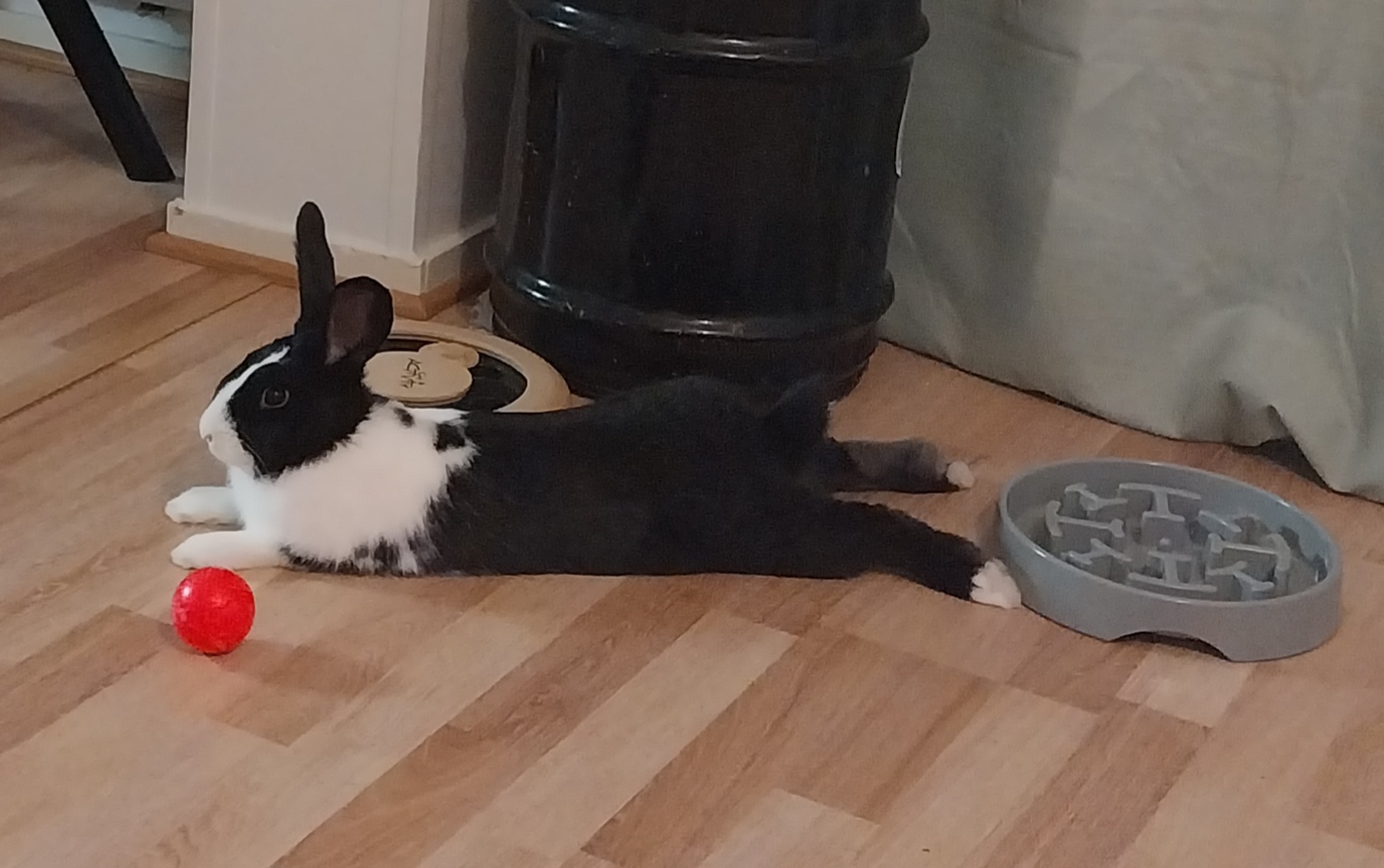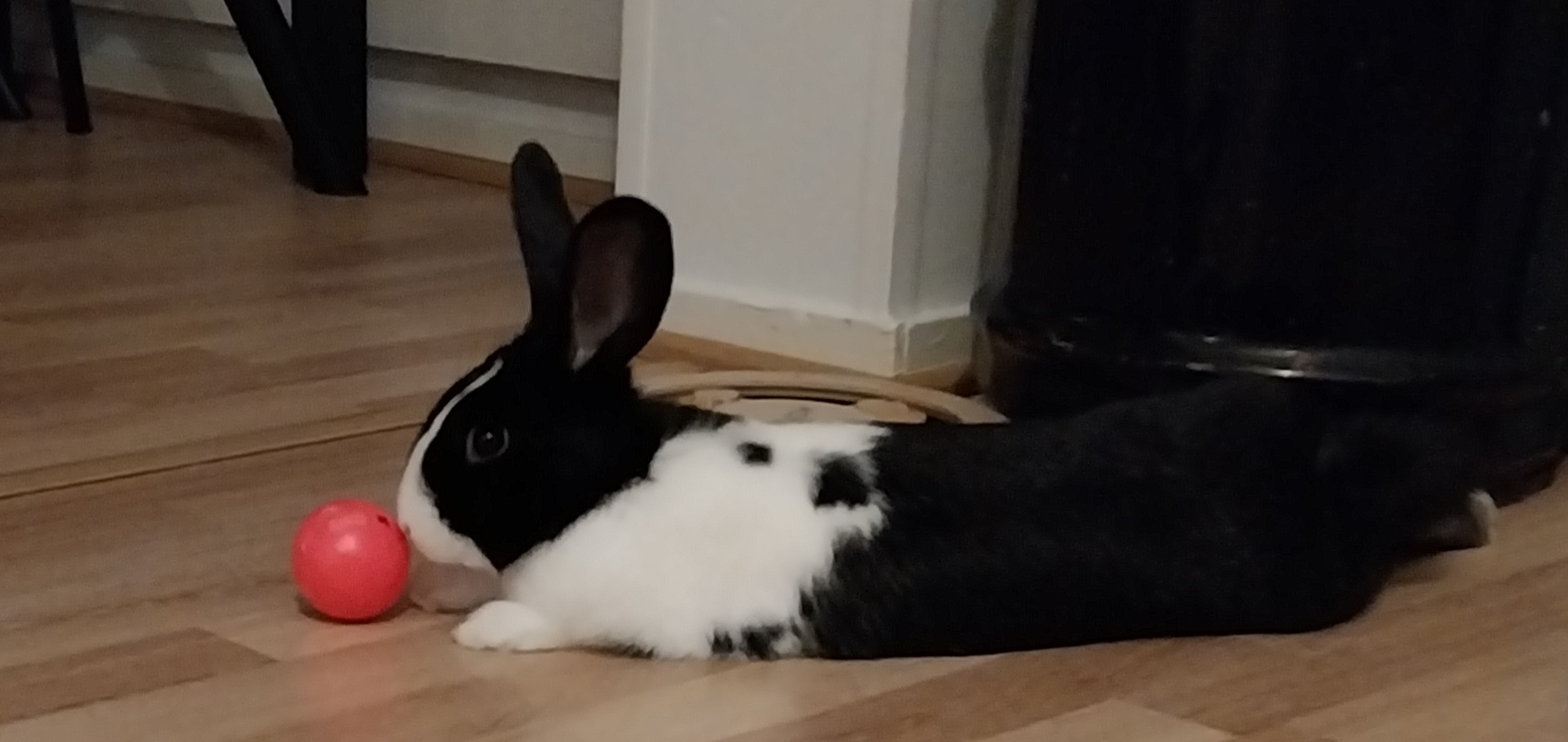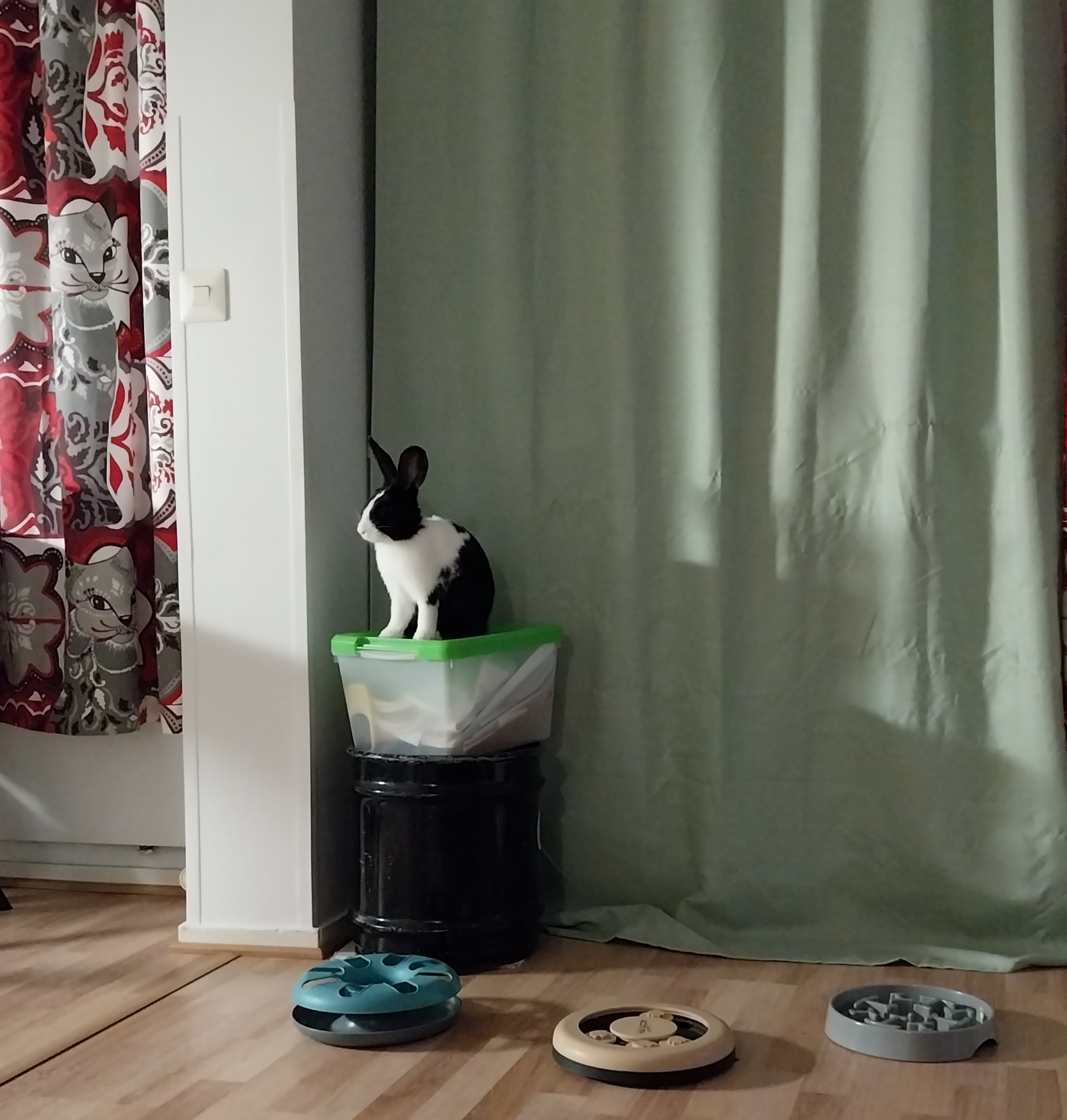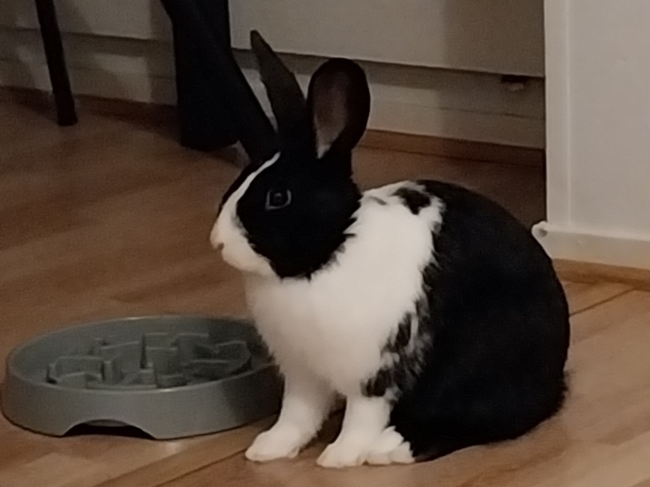 Sijaiskodissa pelletit tarjottu ripoteltuna ympäri asuntoa aktivointileluja hyödyntäen. Koda nauttii suuresti kaikesta vastaavasta puuhastelusta ja on helposti motivoitavissa temppujenkin harjoitteluun. Välillä on sitten mukava könytä ihmisen kainaloon hakemaan hellyyttä. Kohteliaana kanina tarjoaa silityksistä "turkin" sukimista ihmisille vastavuoroisesti.
