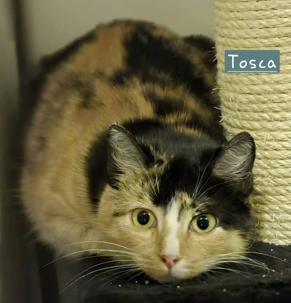 Tosca on vielä vähän ujo ihmistä kohtaan, mutta mielellään tarkkailee kiipeilypuusta mitä ihminen puuhailee. Piiloon se ei enää mene kuten alkuun sijaiskotiin muutettuaan teki.