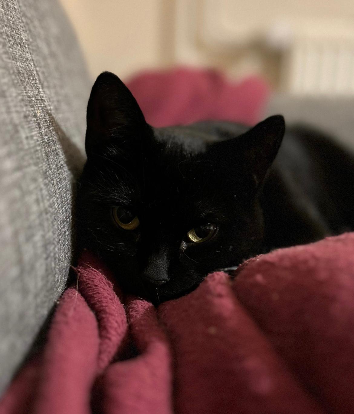 Musta Fanni on energinen tapaus. Rakastaa leikkejä höyhenkeppien kanssa, rallittaa raapimapuulta korkeimmalle oksalle ja takaisin lattialle. Musta väri on oivallinen ninjaleikkeihin! Fanni on kiltti ja herkkujen perään. Silittää saa silloin, kun herkkutahnaa on tarjolla, muuten silittäminen on Fannin mielestä hieman epäilyttävää. Utelias ja kiinnostunut ihmisen liikkeistä joka tavalla, kiehnää jaloissa kovasti.