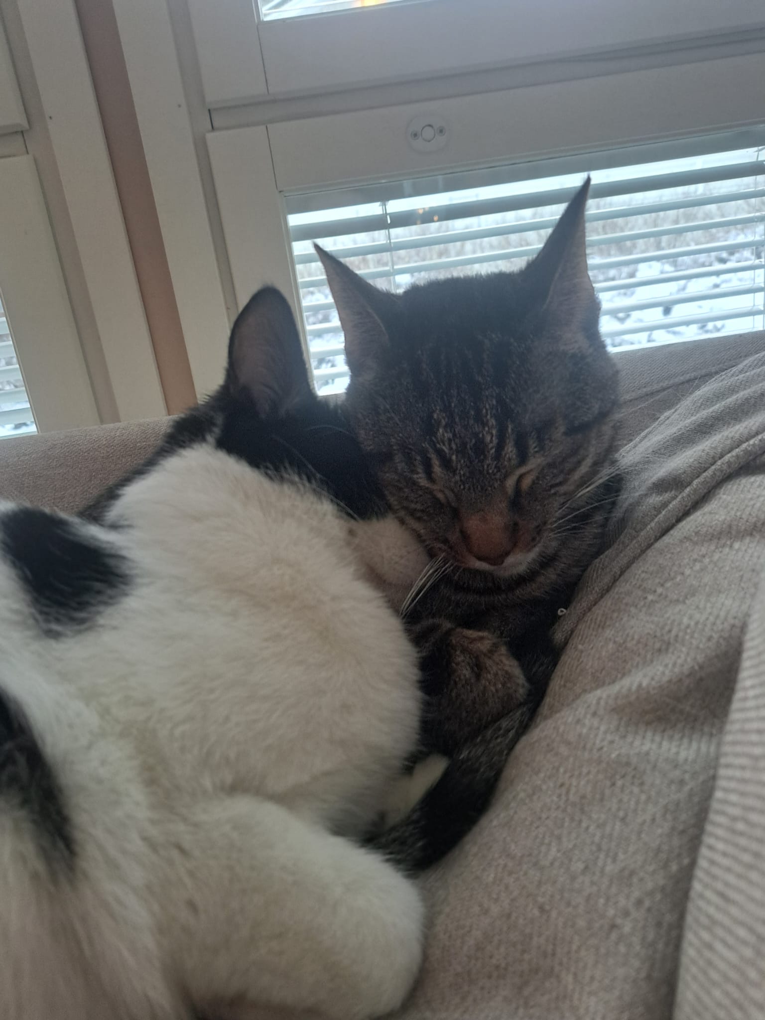 Sijaiskodissa kissat ovat olleet juhannuksesta 2025. Tänä aikana kissat ovat osoittautuneet ihmisrakkaiksi, joskin omaa tilaa mielellään ottaviksi.