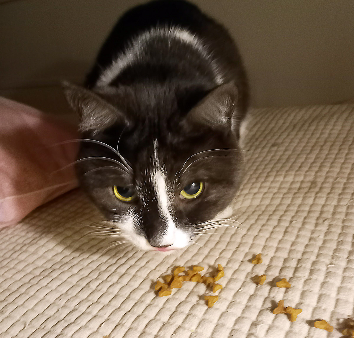 Koska en juuri viihdy ihmisten lähellä, niin etsin erittäin rauhallista kotia, ehkä jopa vain yhden hengen huushollia. Sellaista jossa ei kaivata sylikissaa, sellainen kun en ole. Mutta iltaisin haluan tulla hakemaan sängystä iltanamit! Pieni annos laadukasta kuivamuonaa hoitajan vierestä on kiva juttu.