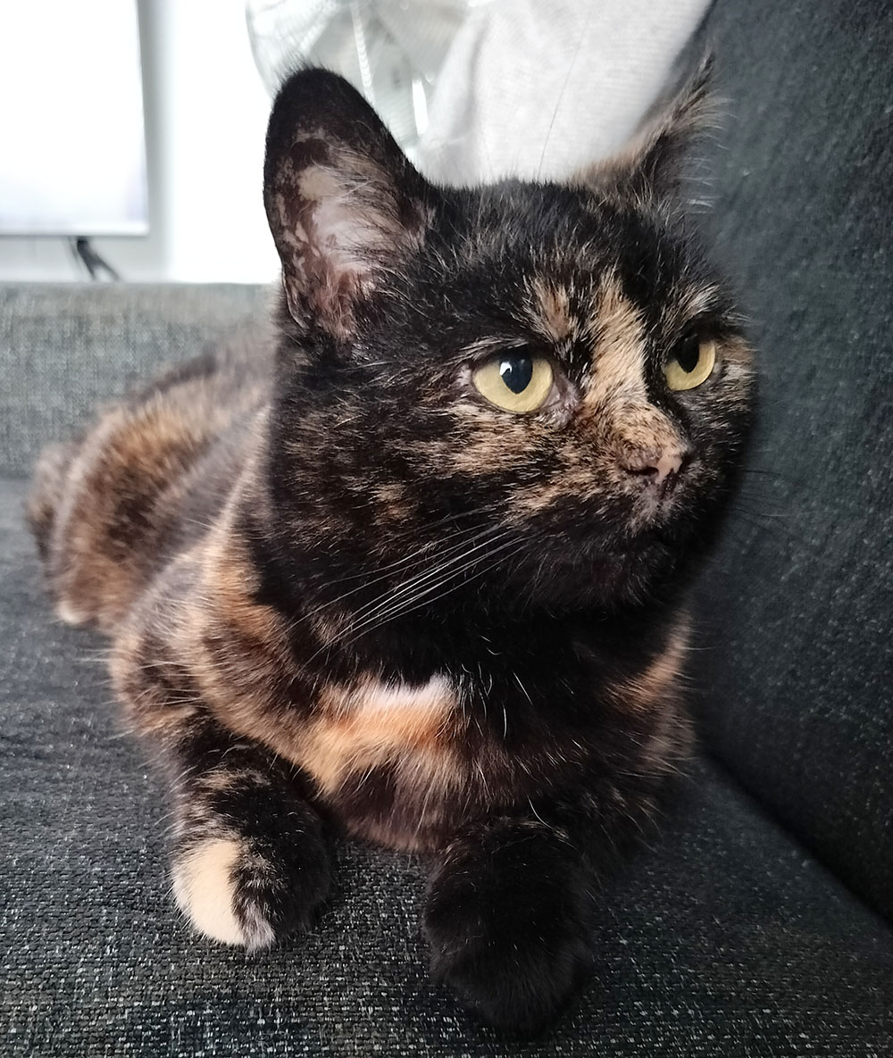 Tykkään ihmisistä todella paljon, varsinkin jos ne silittelee ja antaa ruokaa. Sylissä mä en oikein tykkää olla. Säikyn joskus nopeita liikkeitä ja yllättäviä tilanteita, jolloin saatan sähähtää varoitukseksi. Mulla ei ole kokemusta muista kissoista, koirista eikä pienistä lapsista. Tapaamieni vähän vanhempien lasten kanssa tulin hyvin juttuun. En usko että tulisin kovin hyvin toimeen ainakaan kovin energisen koiran tai pienten lasten kanssa, koska säikyn niin helposti. Veikkaan että pärjäisin hyvin ainoana lemmikkinä, jos kodissa riittää ihmisseuraa, tai rauhallisen kissakaverin kanssa.