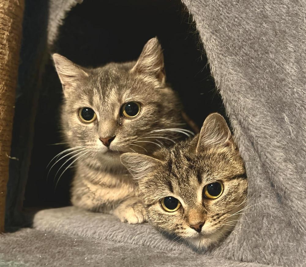Kissat ovat pienestä populaatiosta ja muuttivat sijaiskotiin Ilmajoelle tammikuussa. Ensimmäiset viikot sijaiskodissa kuluivat piilopaikoissa, joihin riennettiin sähisemään oven avauduttua. Hitaasti mutta varmasti ne oppivat yhdistämään ihmisen ruokaan ja uskalsivat tulla esiin piiloistaan. Kuukauden kuluttua kumpaakin sai silitellä ruokakupin ääressä, ja siitä asti kesyyntyminen on edistynyt suurin harppauksin.