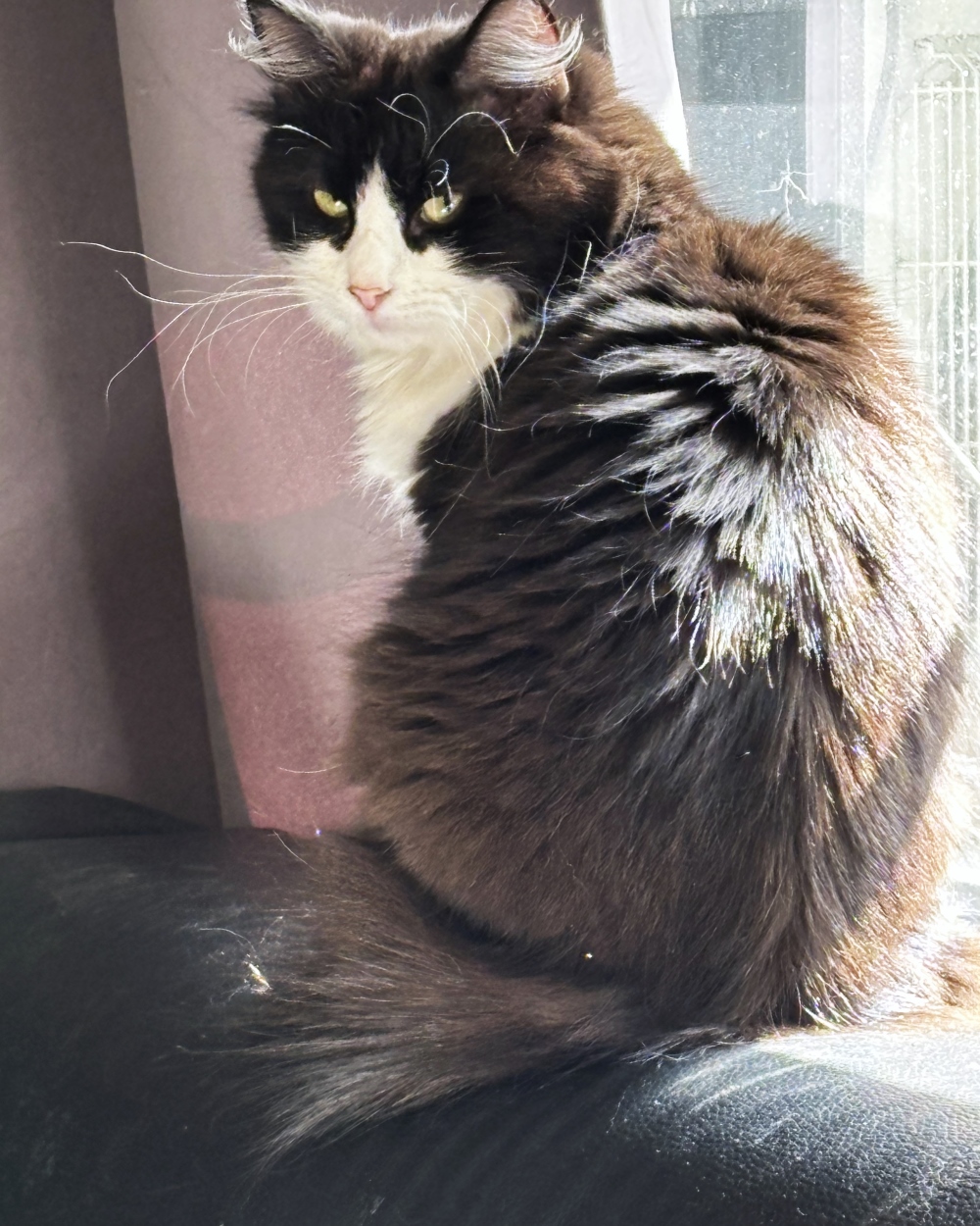 Tilapäiskodissani on muutama muukin kissa ja olen heidän kanssaan oikein hyvissä väleissä. Tulevassa kodissakin tarvitsen kissakaverin, mieluiten sellaisen rohkean, avoimen ja ystävällisen, jonka kanssa voisin opetella lisää kissamaisia juttua ja luottamaan ihmiseen. Liian dominoiva kissakaveri tuskin sopisi minulle.